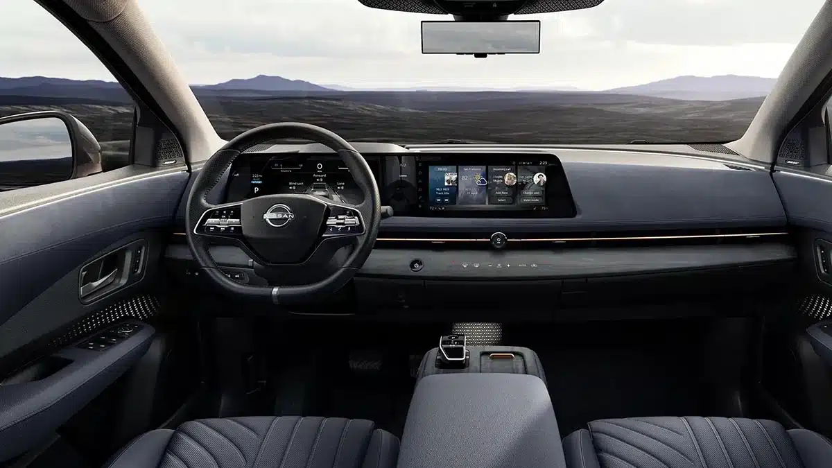 Le design du Nissan Ariya témoigne d’une élégance sobre et futuriste qui séduit immédiatement. Ses lignes fluides et modernes, associées à une silhouette robuste, confèrent à ce SUV une allure distinctive sur la route. L’habitacle est conçu pour le confort et la praticité, avec des matériaux de qualité et une finition soignée qui ajoutent une touche premium. Les sièges spacieux et ajustables, associés à un espace généreux pour les passagers arrière, rendent ce SUV particulièrement adapté aux familles et aux trajets longue distance.