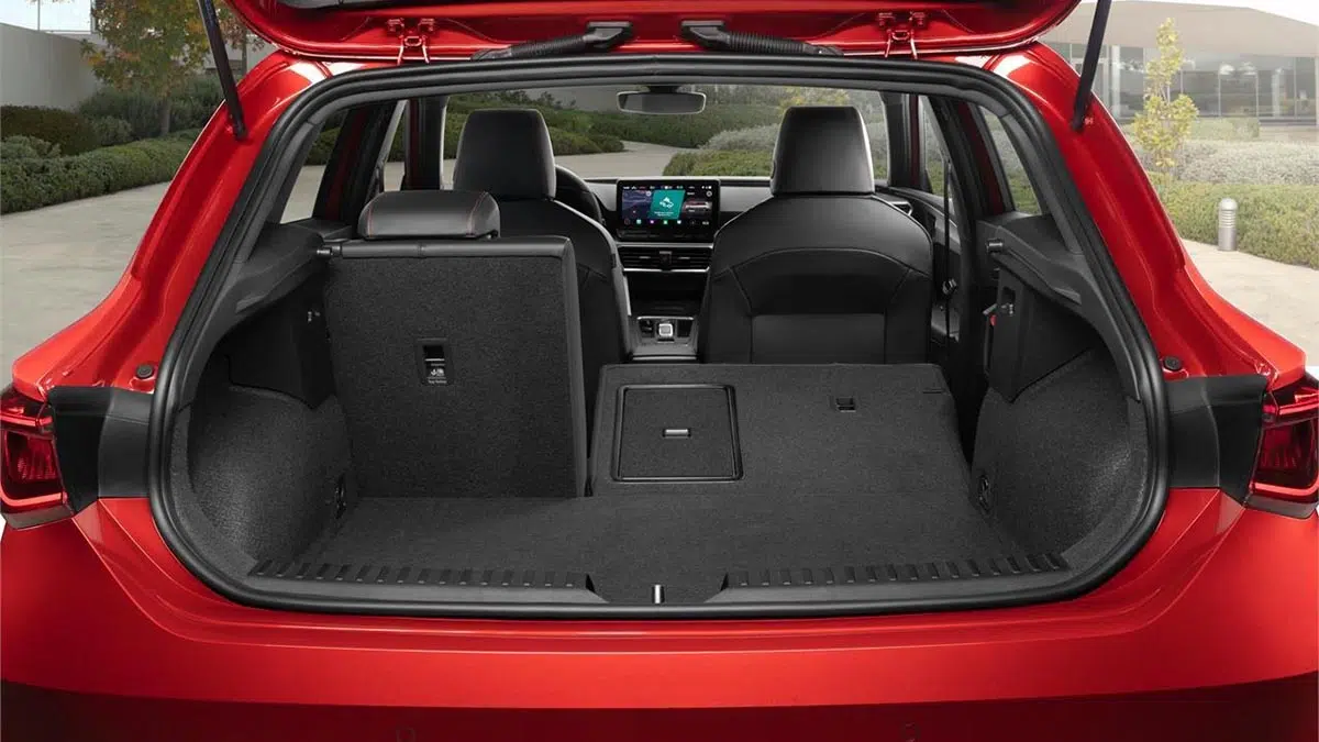 Le coffre de la SEAT León e-Hybrid 2024 offre une capacité de 470 litres, légèrement réduite par rapport à la version thermique en raison de l’intégration de la batterie. Malgré cette réduction, il reste spacieux et pratique pour les besoins quotidiens et les voyages en famille. Grâce à son ouverture large et son seuil bas, le chargement des bagages ou des objets volumineux est facilité, rendant cette berline hybride aussi fonctionnelle qu’élégante.