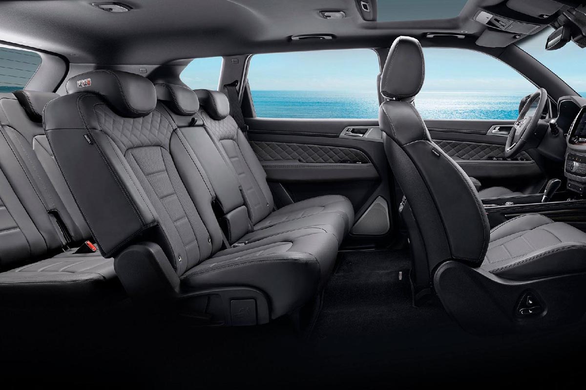 L’intérieur du KGM Rexton mise sur un espace généreux et une ambiance moderne. Il peut accueillir jusqu’à 7 passagers, avec une habitabilité optimisée et un volume de coffre de 641 litres, parfait pour les longs trajets en famille.