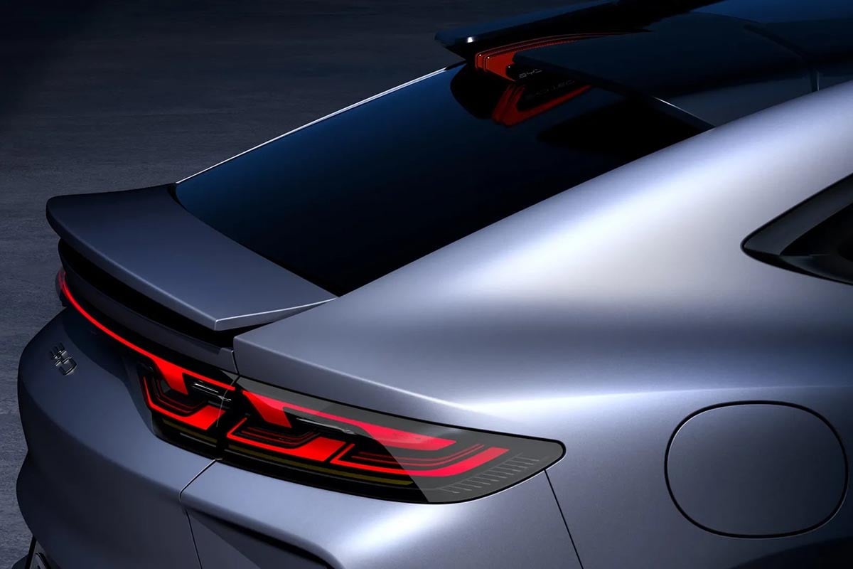 Côté style, difficile de passer à côté du parallèle visuel avec le Porsche Cayenne Coupé. Même ligne fuyante, même traitement musclé des ailes arrière, et une signature lumineuse arrière qui semble tout droit sortie de Stuttgart. L’inspiration ne s’arrête pas là : certains éléments évoquent aussi le Kia EV6, comme le traitement du montant A ou la calandre fermée rétroéclairée. Le tout aboutit à une silhouette sportive et imposante, agrémentée de détails spectaculaires comme l’aileron arrière actif ou les caméras à la place des rétroviseurs.