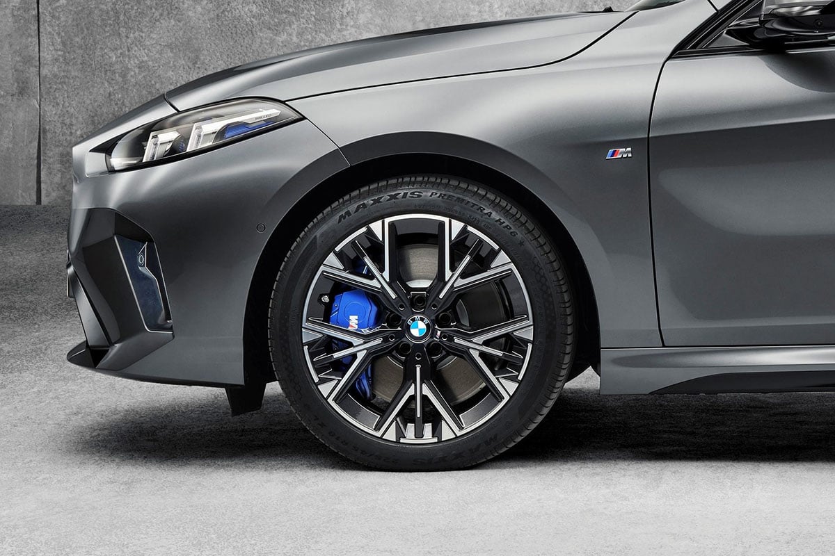 Profil de la BMW 120d M Sport Design 2025 avec jantes alliage et ligne tendue
