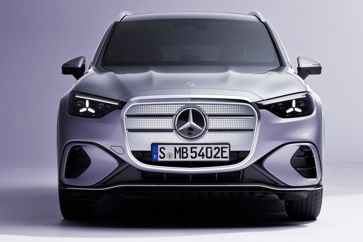 Avant du Mercedes GLC électrique 2026 avec calandre fermée et projecteurs LED